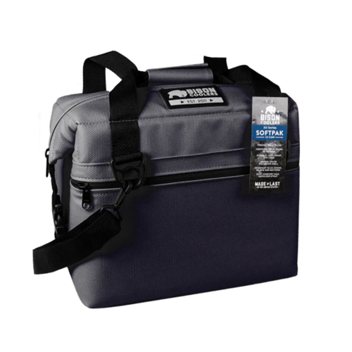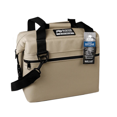 Built for tougher adventures, the 12-Can Bison USA-Made SoftPak XD Cooler Bag delivers enhanced durability and all-day cooling performance. Designed with a rugged stain-, fade-, mildew-, and bacteria-resistant polyester shell, this premium soft cooler keeps drinks cold for up to 24 hours thanks to its water-resistant YKK zipper that locks in chill. Reinforced hardware and heavy-duty buckles stand up to demanding use, while the padded shoulder strap ensures comfortable carrying on job sites, camping trips, tailgates, and corporate events. A high-performance, USA-made cooler that makes a powerful and practical promotional gift.