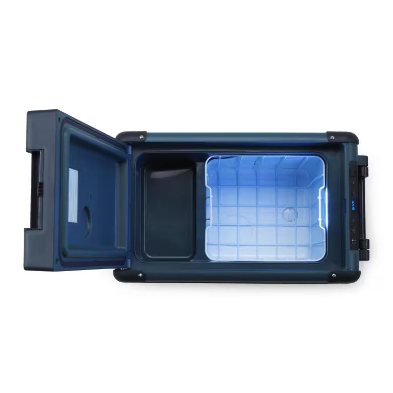 Perfect for family day trips, road travel, or everyday errands, the Dometic CFX2 28L Active Cooling Cooler is an ice-free electric cooler that works like a portable mini fridge—holding up to 36 cans with ease. Powered by Variable Motor Speed Compressor Cooling Technology, it delivers precise temperature control from -7°F to 68°F, so you can chill drinks, keep snacks fresh, or even freeze essentials on the go. Adjust settings quickly using the onboard control panel or the Dometic Mobile Cooling app, and plug in almost anywhere with DC or AC power. Built for travel-ready durability, it features reinforced corners, folding ABS handles, a removable wire basket for easy organization, and a dedicated crisper zone for fruits and veggies. Reliable, lightweight, and adventure-approved, it’s cooling convenience wherever you need it.