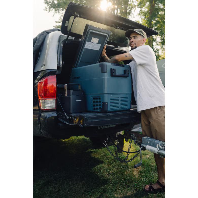 Take ice out of the equation with the Dometic CFX2 45L Active Cooling Cooler—an electric cooler and portable mini fridge built for bigger day trips, road adventures, and everyday convenience. With room for up to 60 cans, it delivers powerful compressor cooling from -7°F to 68°F, so you can chill drinks, keep food fresh, or even freeze essentials on the go. Control temperatures easily through the onboard display or the Dometic Mobile Cooling app, and plug in almost anywhere with DC or AC power. Designed for travel-ready performance, it features a 3-stage battery protection system, removable wire baskets, a dedicated crisper zone, and a lightweight, durable build with reinforced corners and folding ABS handles. Reliable cooling, organized storage, and effortless portability—wherever the road takes you.