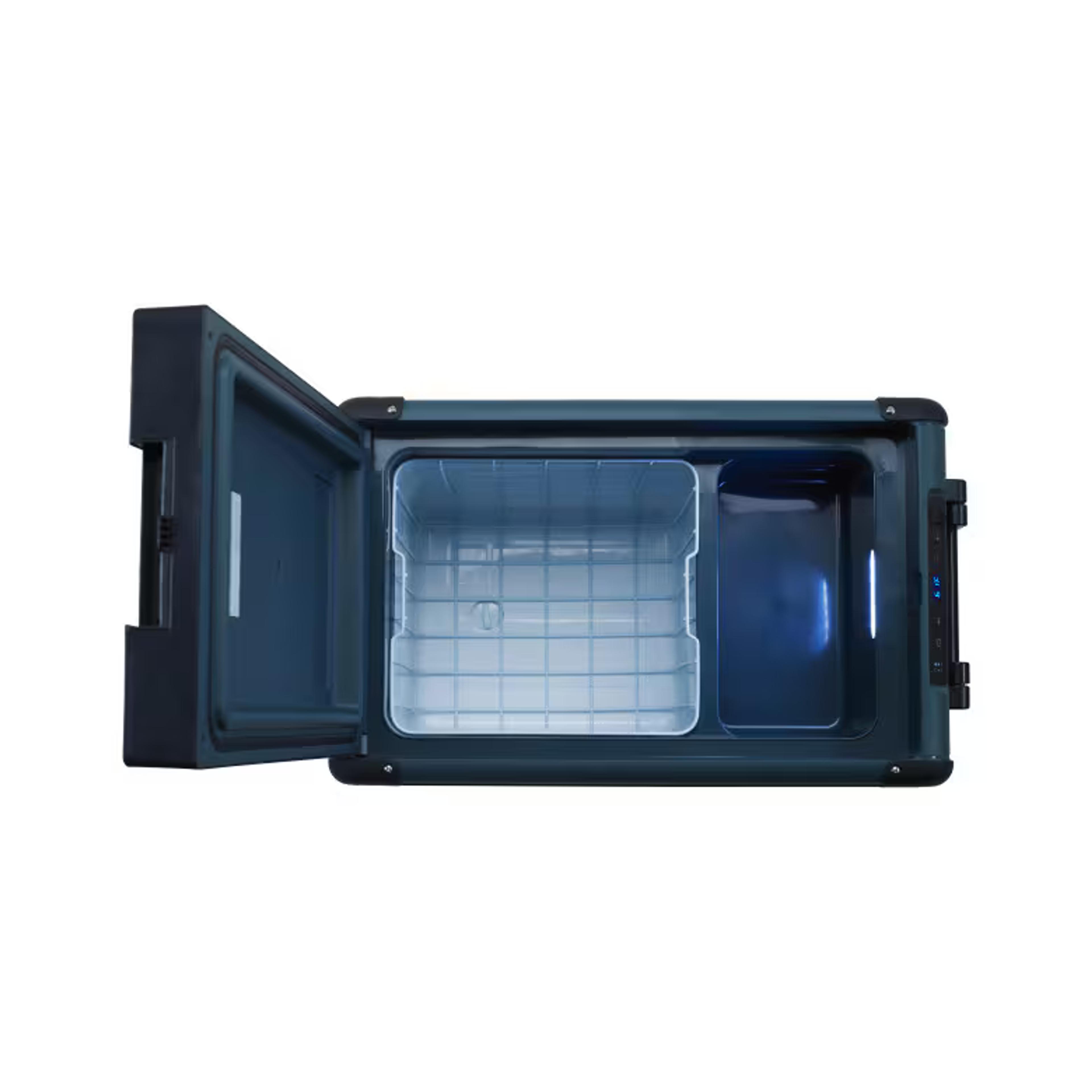 Take ice out of the equation with the Dometic CFX2 45L Active Cooling Cooler—an electric cooler and portable mini fridge built for bigger day trips, road adventures, and everyday convenience. With room for up to 60 cans, it delivers powerful compressor cooling from -7°F to 68°F, so you can chill drinks, keep food fresh, or even freeze essentials on the go. Control temperatures easily through the onboard display or the Dometic Mobile Cooling app, and plug in almost anywhere with DC or AC power. Designed for travel-ready performance, it features a 3-stage battery protection system, removable wire baskets, a dedicated crisper zone, and a lightweight, durable build with reinforced corners and folding ABS handles. Reliable cooling, organized storage, and effortless portability—wherever the road takes you.