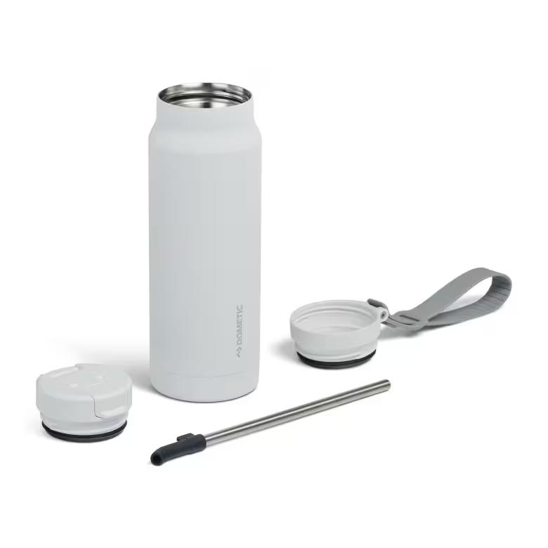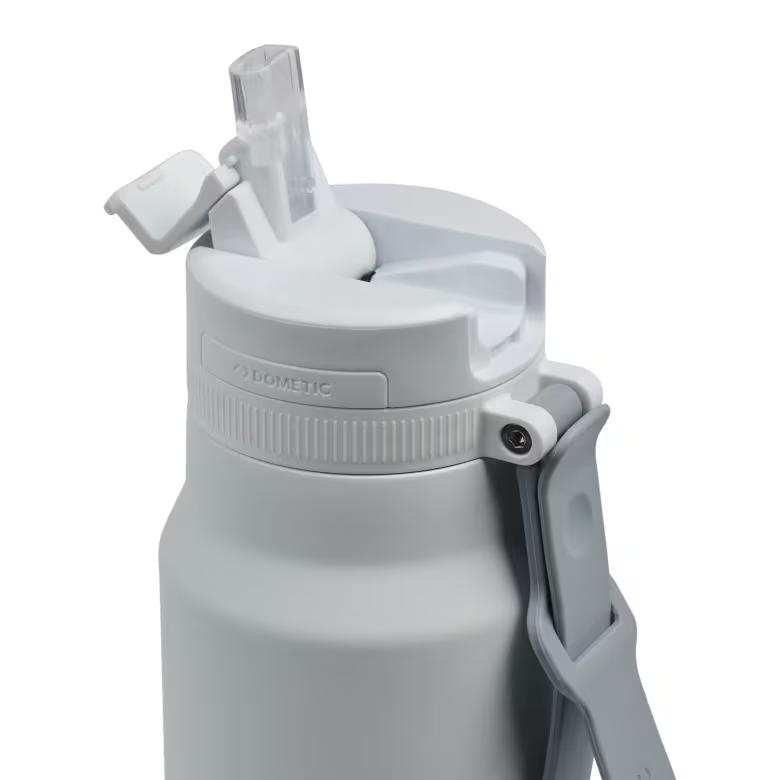 Power through long days with the Dometic Straw Bottle – 1 L, a high-capacity insulated water bottle built for serious hydration. Made from 90% recycled stainless steel, it keeps drinks ice-cold for hours while supporting a more sustainable routine. The stainless-steel straw with a soft silicone tip delivers easy, hands-free sipping during workouts, hikes, or travel, while the leakproof, dishwasher-safe design keeps cleanup simple. Internal measurement markings help you track hydration goals, and the non-slip TPE base adds quiet stability on any surface. Finished with a detachable silicone carry strap for grab-and-go convenience, this durable 1-liter straw bottle is ideal for outdoor adventures, gym sessions, and all-day use when hydration matters most.