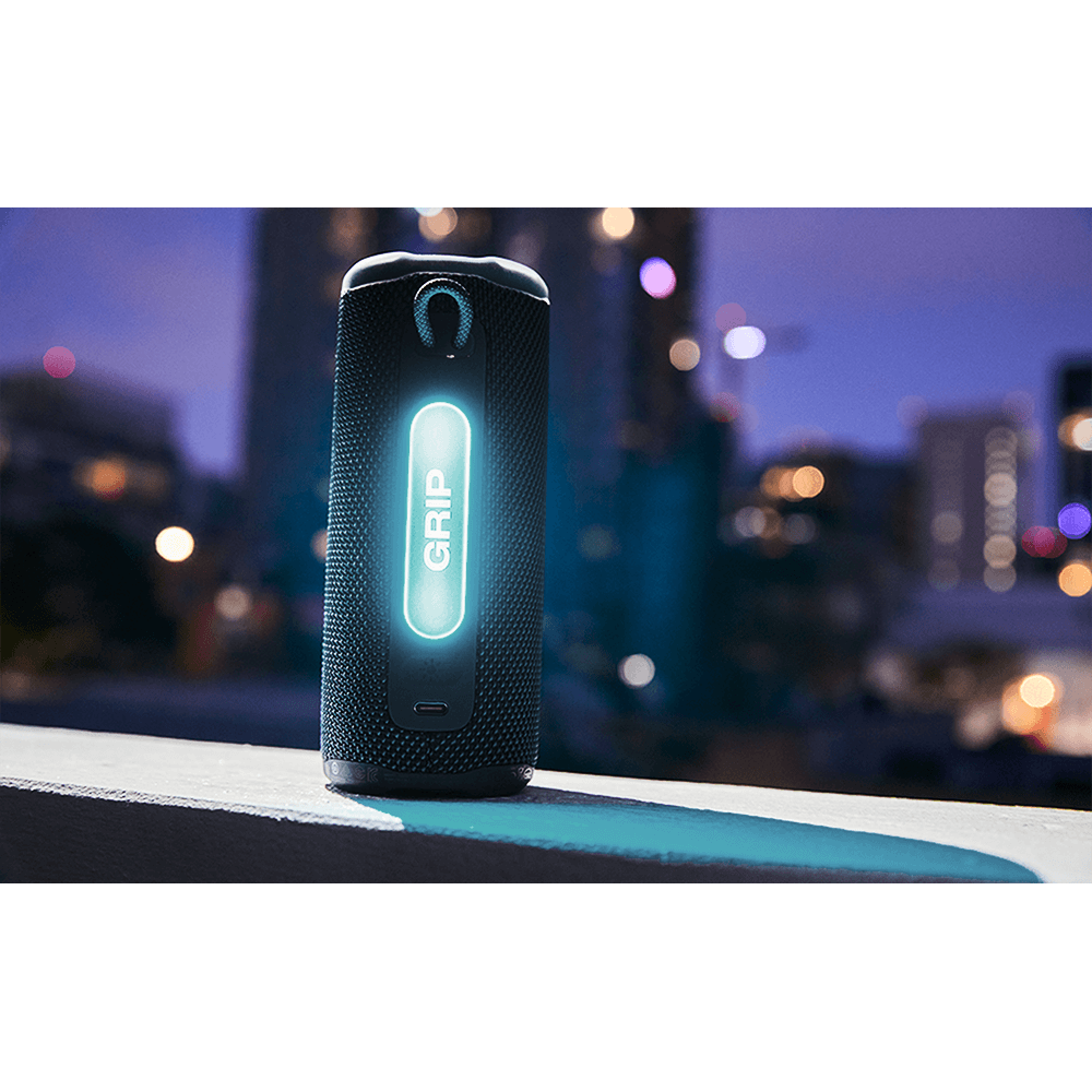 Take your music anywhere with the JBL Grip Compact Bluetooth Speaker, built for big sound in a tough, travel-ready size. Powered by JBL Pro Sound, it delivers deep bass and crisp highs with up to 14 hours of wireless playtime—perfect for workouts, outdoor adventures, beach days, or everyday listening. Add instant vibe with the built-in ambient light, featuring customizable themes and colors to match your mood. Designed to handle real life, it’s waterproof, dustproof, and drop-proof, and AuraCast multi-speaker connectivity makes it easy to amplify the moment. Made with recycled materials and FSC-certified packaging, the JBL Grip is a rugged, eco-conscious speaker that looks as good as it sounds.