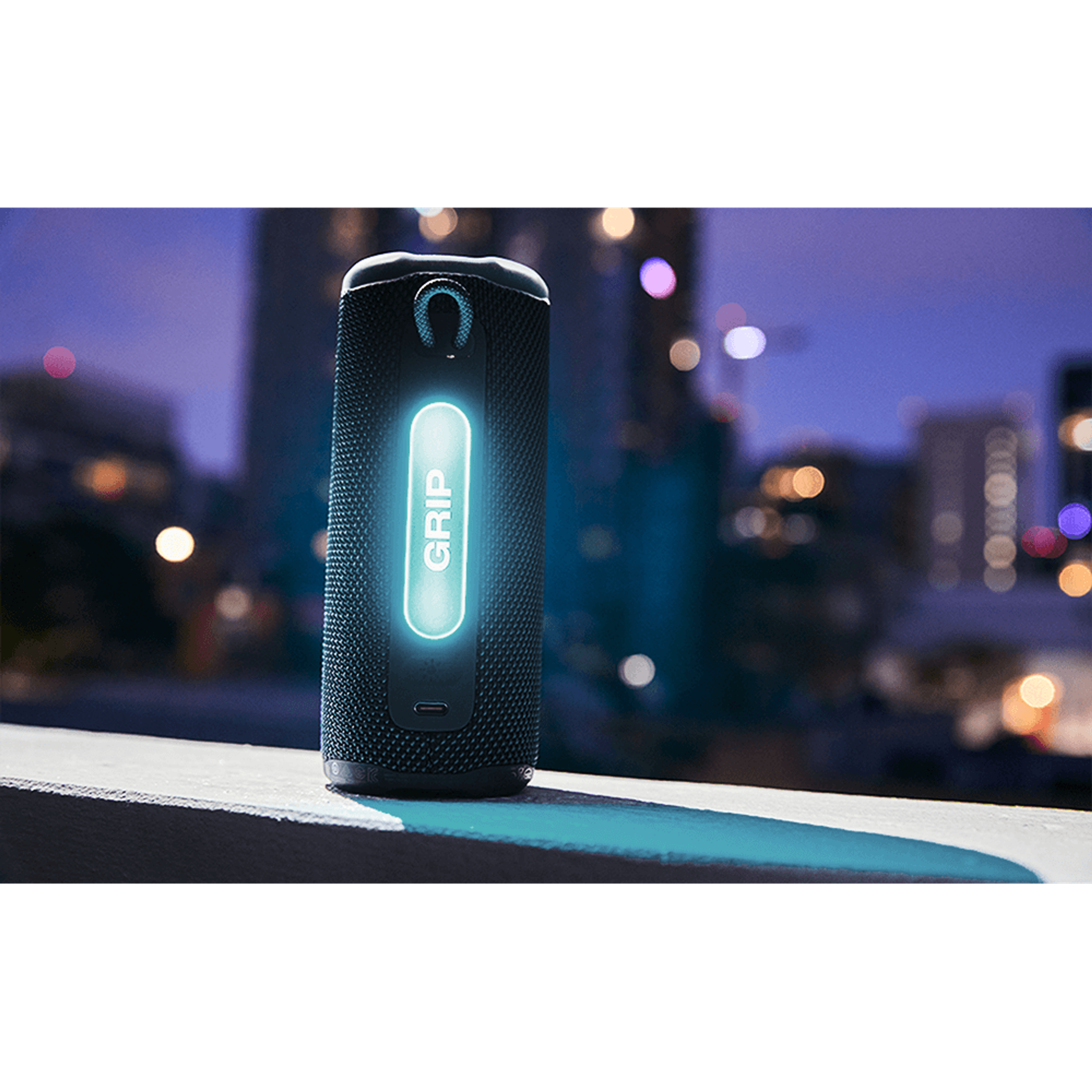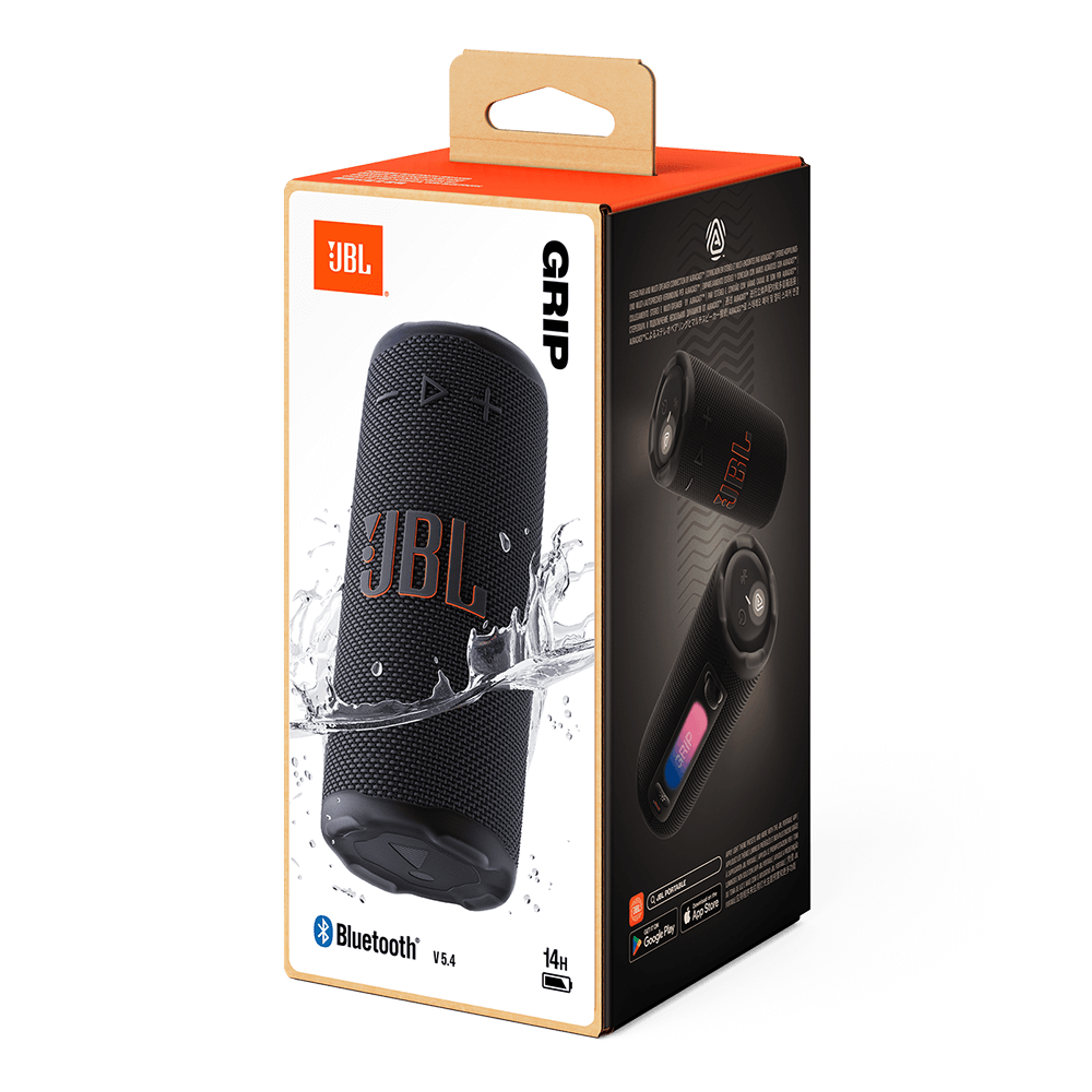 Take your music anywhere with the JBL Grip Compact Bluetooth Speaker, built for big sound in a tough, travel-ready size. Powered by JBL Pro Sound, it delivers deep bass and crisp highs with up to 14 hours of wireless playtime—perfect for workouts, outdoor adventures, beach days, or everyday listening. Add instant vibe with the built-in ambient light, featuring customizable themes and colors to match your mood. Designed to handle real life, it’s waterproof, dustproof, and drop-proof, and AuraCast multi-speaker connectivity makes it easy to amplify the moment. Made with recycled materials and FSC-certified packaging, the JBL Grip is a rugged, eco-conscious speaker that looks as good as it sounds.