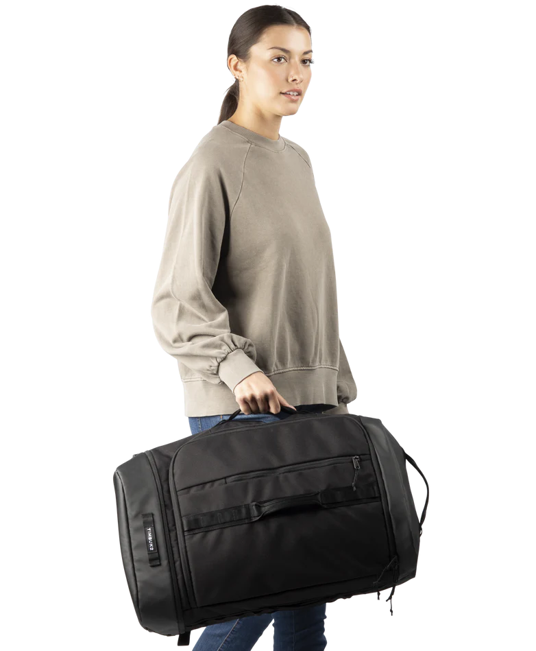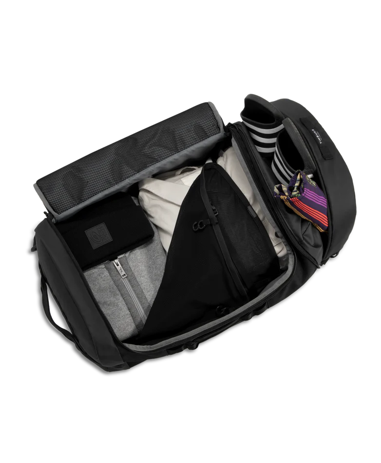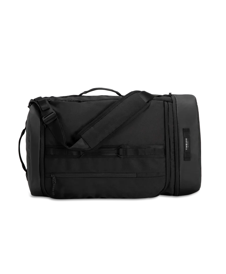 Meet the bag that does it all: the Timbuk2 Wingman Travel Backpack Duffel, built for work travel, weekend getaways, and everyday hauling. This multifunctional duffel easily converts from backpack carry to classic duffel mode with a detachable shoulder strap, giving you the flexibility to move through airports, commutes, and busy days with ease. Dual padded laptop pockets protect both a 17" and 13" device—perfect for tech-heavy travel or hybrid work setups. Inside, a mesh compression panel keeps clothing and gear snug and organized, while a tuckable waist strap adds lumbar support when the load gets heavy. Finished with a concealed water bottle pocket with exterior zip access, this sleek travel duffel keeps essentials secure, accessible, and ready for anything—backed by a lifetime warranty.