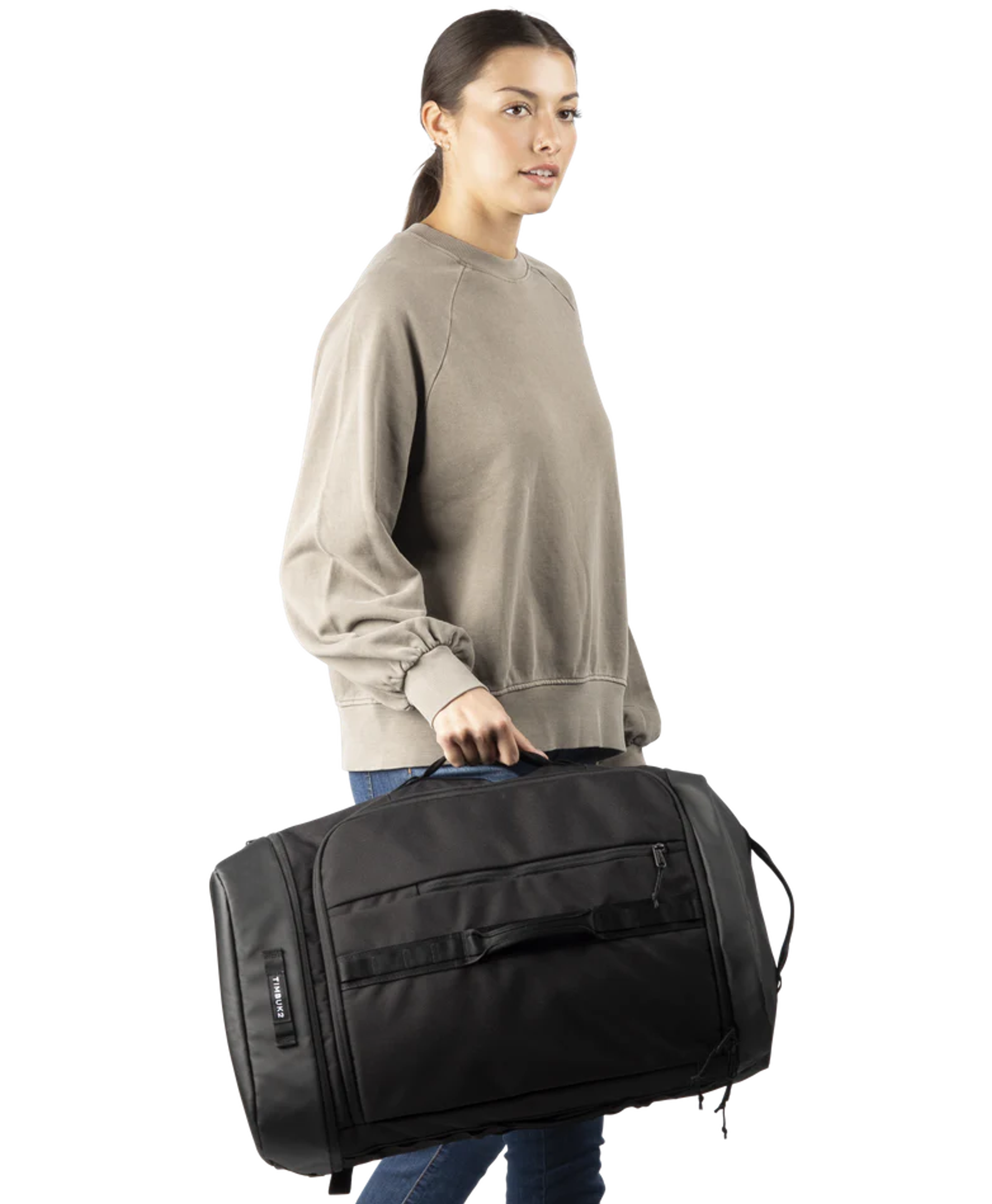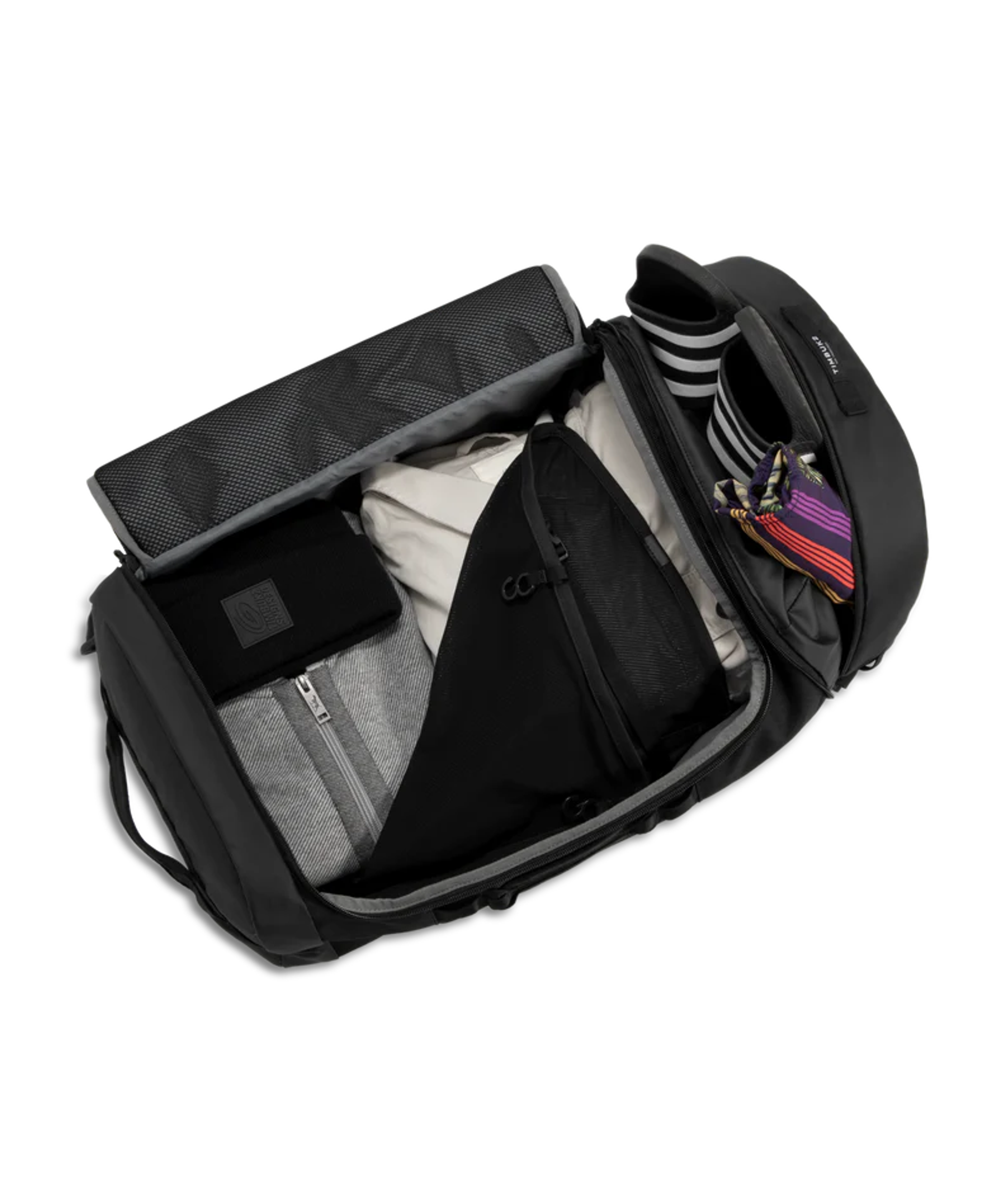 Meet the bag that does it all: the Timbuk2 Wingman Travel Backpack Duffel, built for work travel, weekend getaways, and everyday hauling. This multifunctional duffel easily converts from backpack carry to classic duffel mode with a detachable shoulder strap, giving you the flexibility to move through airports, commutes, and busy days with ease. Dual padded laptop pockets protect both a 17" and 13" device—perfect for tech-heavy travel or hybrid work setups. Inside, a mesh compression panel keeps clothing and gear snug and organized, while a tuckable waist strap adds lumbar support when the load gets heavy. Finished with a concealed water bottle pocket with exterior zip access, this sleek travel duffel keeps essentials secure, accessible, and ready for anything—backed by a lifetime warranty.